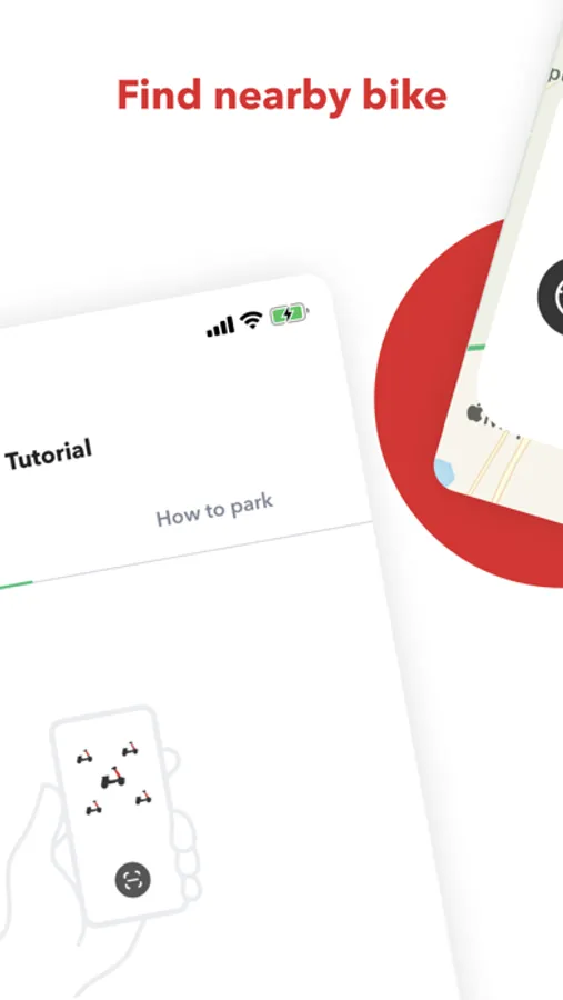 Find green zone in the app map. Put the e-Bike on the sidewalk, at bike rack or any flat place where e-Bike will not disturb pedestrians and other road users.