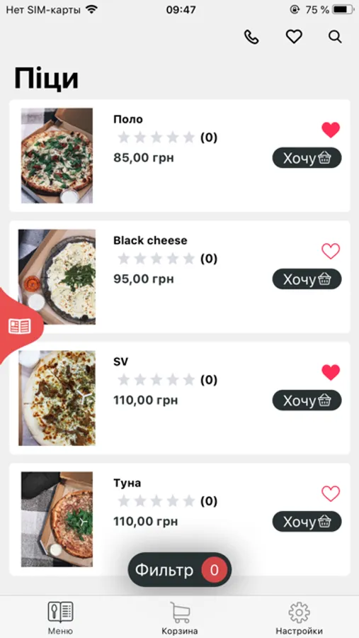 Використовуючи мобільний додаток TISTO, Ви з легкістю можете замовити піцу на будь-який смак та розмір. Доступні в додатку докладні описи і якісні фотографії страв допоможуть Вам обрати саме те, що Ви хочете.