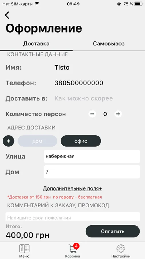 - вказати час доставки замовлення.