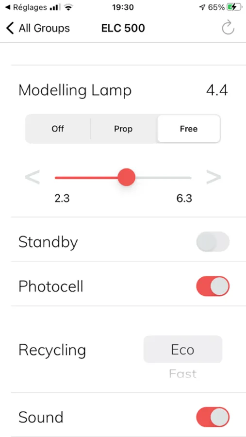 • Control individually or simultaneously (power, modelling lamp, sound, etc.)