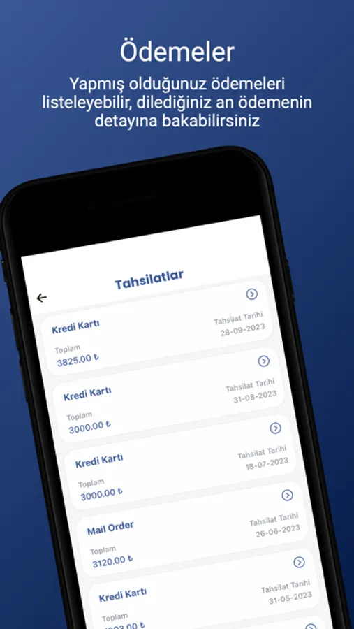 Ödemeler sekmesinde bugüne kadar yapmış olduğunuz tüm ödemelere ve detayına ulaşabilirsiniz.