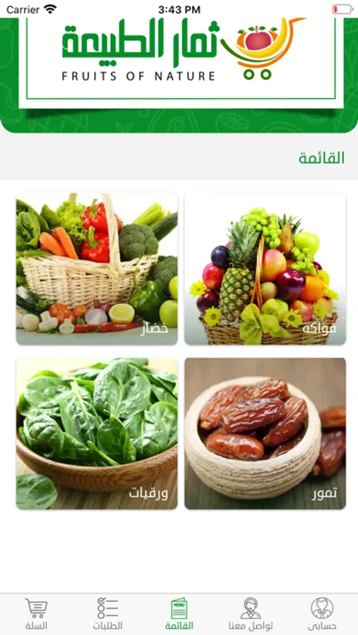 الآن مع تطبيق ثمار الطبيعة يمكنك توفير الوقت الضائع في الانتظار في المتاجر وطلب تشكيلة متنوعة من أجود أصناف الخضار الطازجة التي تم اختيارها وتعبئتها بعناية من قِبل موظفين مُدربين لتصل طازجة وصحية إلى باب منزلكم