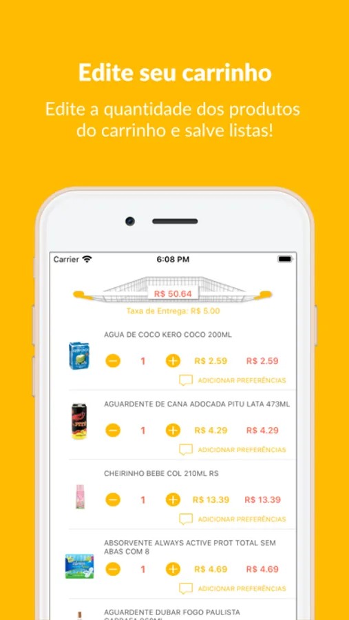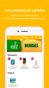 • Adicionar produtos no seu carrinho com um simples tocar e arrastar.