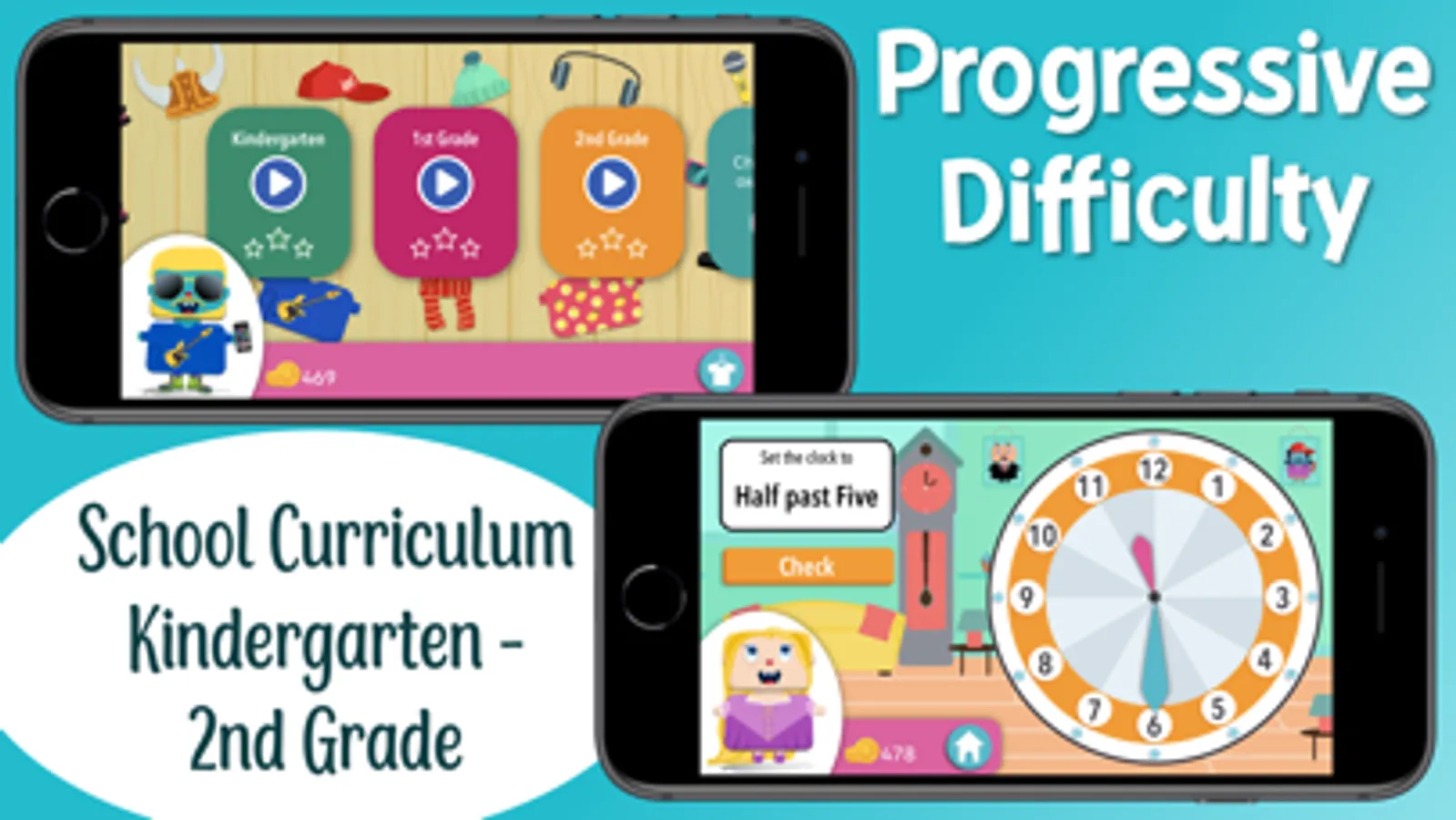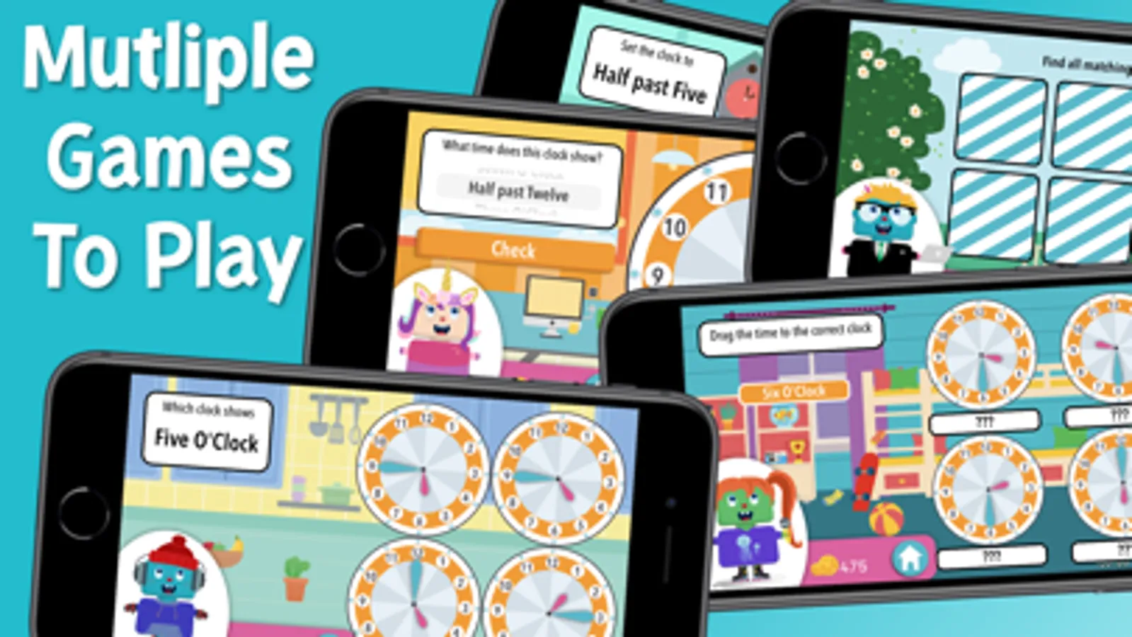 - 5 different style games for loads of fun to learn time while playing