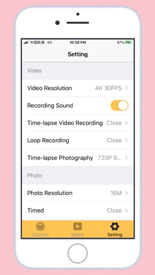 Slow photography can be set according to different resolutions.