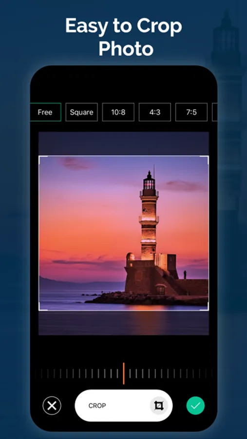 • Crop – With the cropping tool provided crop your stunning photo before erasing the surroundings.