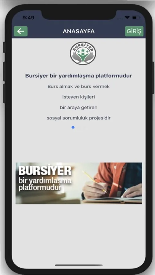 Bursiyer bir yardımlaşma platformudur. Burs vermek ve burs almak isteyen kişileri ortak bir platformda buluşturmak amaçlanmıştır. Herhangi bir para transferi söz konusu değildir.