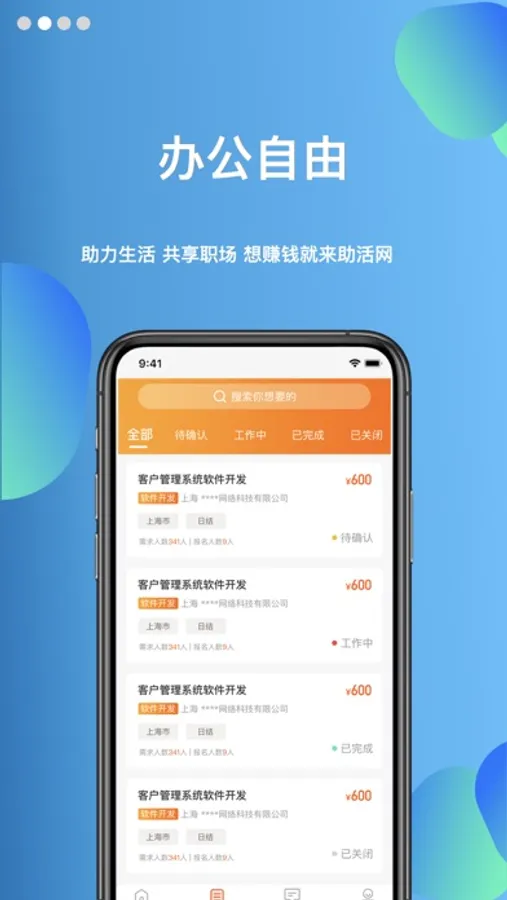 助活网是一站式灵活就业共享经济平台,为人才与企业雇主搭建起人才双边共享市场,帮助个人户突破地域与时间限制,为人才匹配全球商机。通过整合三方资源,为各行业的各类企业提供“精准对接-线上服务-结算发放”一站式全流程服务,助推企业品牌升级、商业模式升级;助力政府政策,稳就业、保民生,为灵活就业人员提供更多机会和保障,为各类企业提供更多选择和减负。