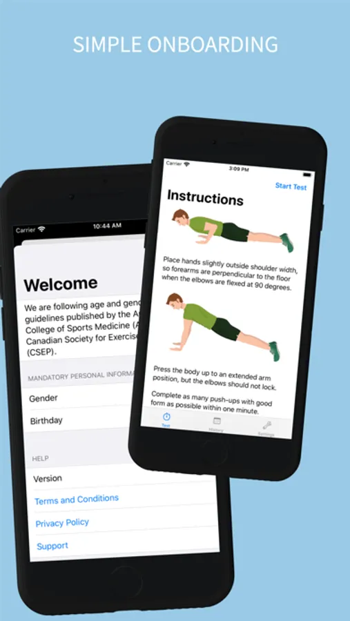 Fitness Level uses the American College of Sports Medicine (ACSM) protocol to accurately measure and track your push-up fitness level. The app includes detailed instructions and a timer to help you properly perform the test, as well as a reference table that takes into account your age and gender, so you can compare your results to the appropriate standards.