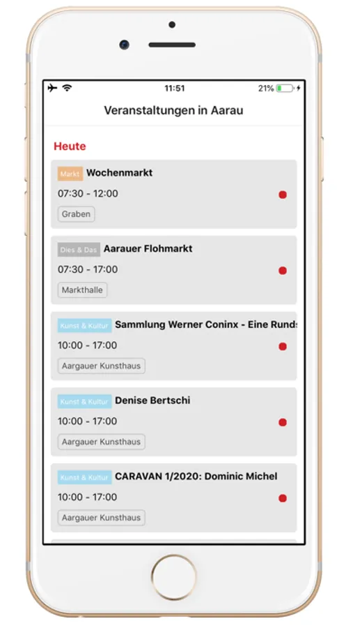 Eine Welt mit Veranstaltungen ist eine bessere Welt. Egal ob Party oder Konzert bis früh morgens, ein spannender Rundgang durch das mittelalterliche Aarau oder ein packendes Pferderennen. Dank der Event App von Heartbeat Aarau entgeht dir bestimmt kein Event mehr in Aarau.