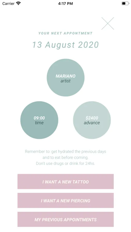 Book an appointment for your next tattoo or piercing. Ask for the photos of your visit to the studio and always have the information you need to care for your tattoos, piercings and jewelry at hand.