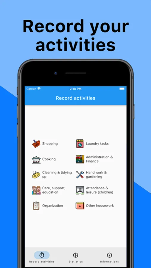 Housework is an application designed to track the time spent on household chores. Through a simple and intuitive interface, you can record and track the different tasks you do on a daily basis.