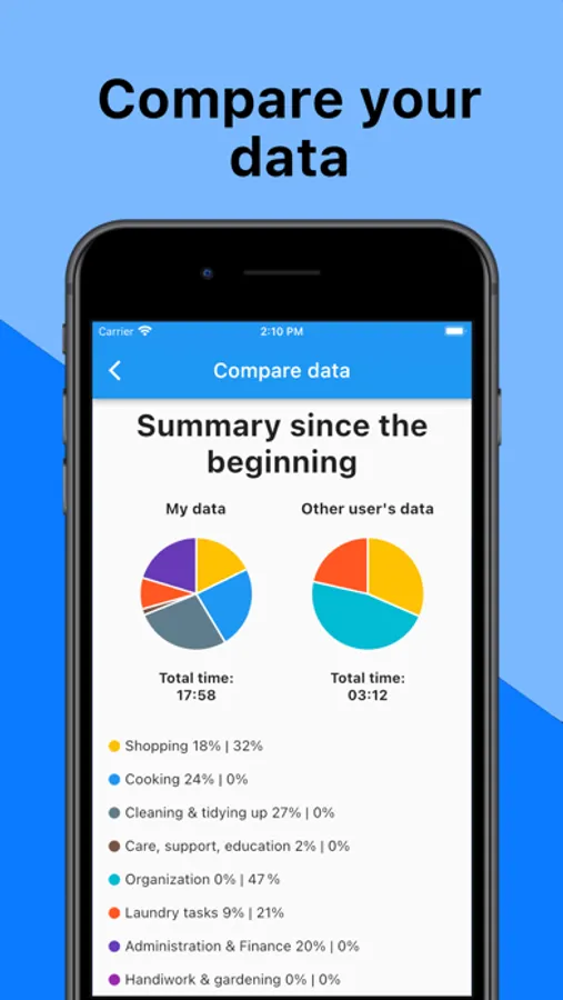 This application can be used to help you think about how to share tasks: by comparing your data with that of the other members of your household, you can get a clear idea of how they are distributed.