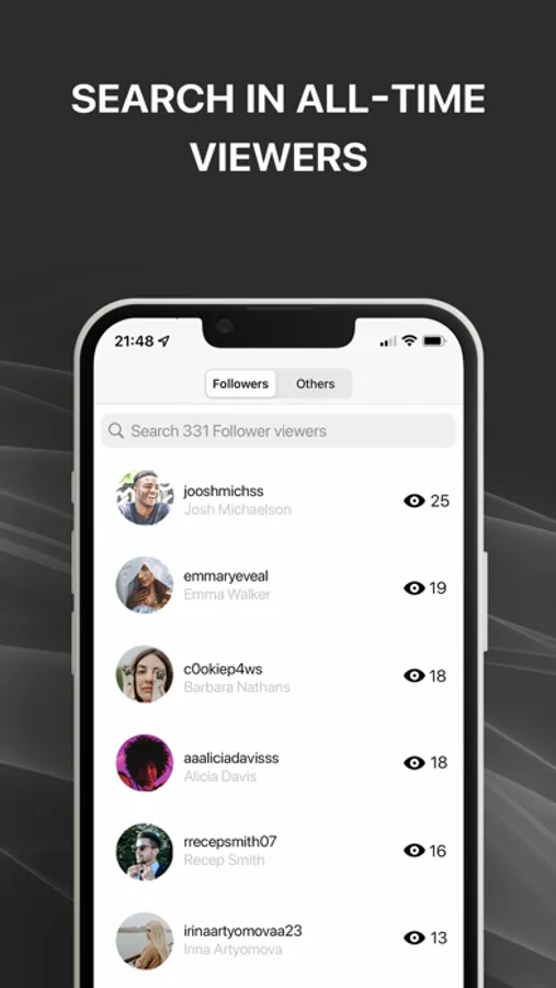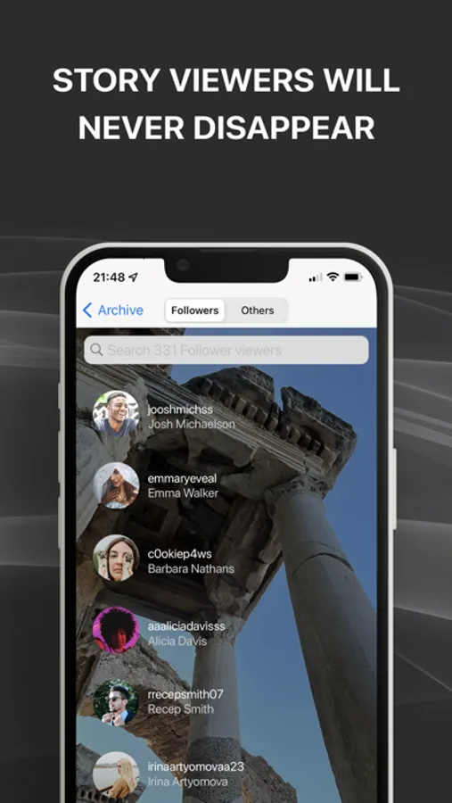 Story Archive + for Instagram helps you easily see and store your story viewers. Search in all-time story viewers. Filter your followers and other viewers. Story viewers will never disappear again.