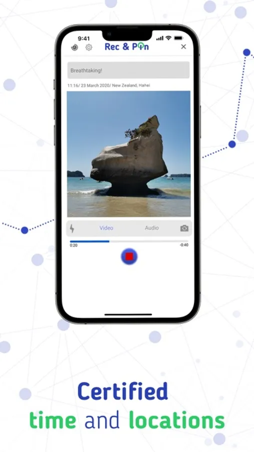 Rec & Pin (Rec n Pin) app creates an integrated visual and aural experience that benefits users to enlighten a situation, educate people or boost synergy by recording genuine content. Users can only use the mobile app to record at a location and drop it as a pin only on that specific location. Rec & Pin certificates the recording with a digital watermark containing a unique identifier embedded named RNP-Code. Others can check that specific code and find out whether a given file is authentic through Rec & Pin website (www.recnpin.com/rnp-code).