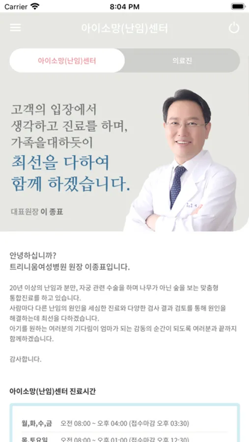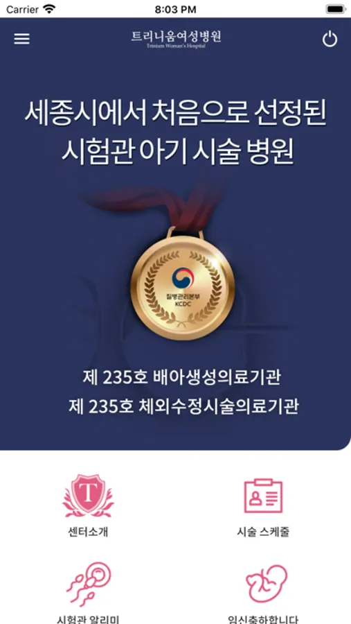 트리니움여성병원 난임센터 앱에서는 다양한 건강정보, 교육, 시술 스케줄, 시험관 알리미, 검사결과 확인, 공지사항 등을 확인할 수 있습니다.