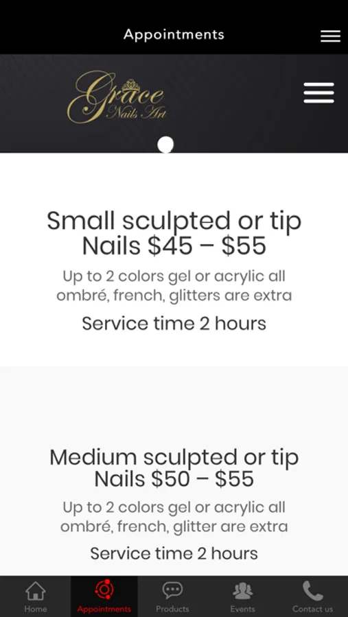 Grace Nails Art main functionality is informing its clients with the latest news. Grace Nails Art located in Woodbridge VA offers its app to its viewers to see the different styles and be able to book the appointment.