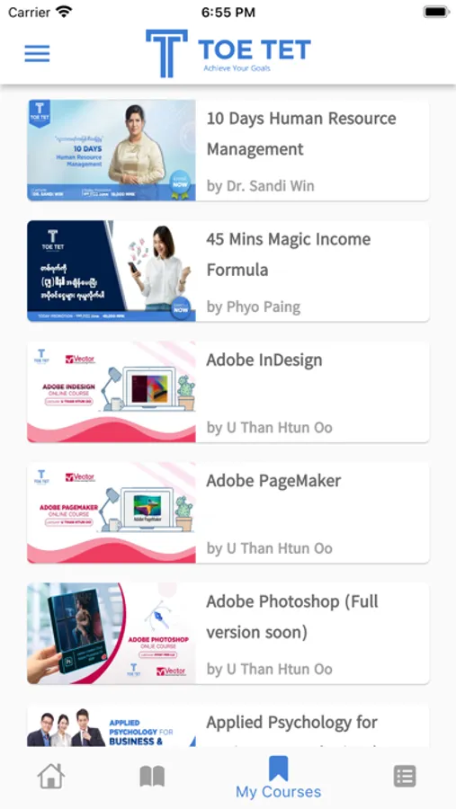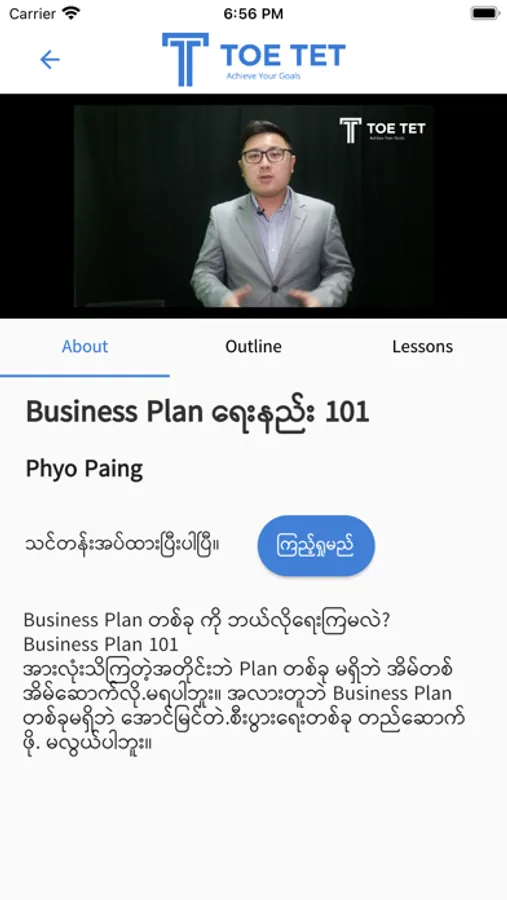 Toe Tet is an online learning app for personal, professional and business development to help you achieve your goals. Toe Tet online courses are filled with recorded video lessons which you can study at your own pace. If you send the assignments what you have learnt in this course to admin@yec.edu.mm, we will issue you a digital certificate with Toe Tet logo on it. The user experience would be a lot better if you can study with laptop. With love, ToeTet