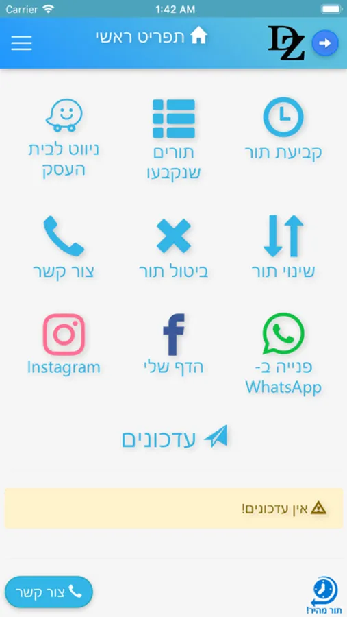 באפליקציה אפשר לקבוע תור, לנווט באמצעות Waze ולפנות אליי באמצעות WhatsApp.