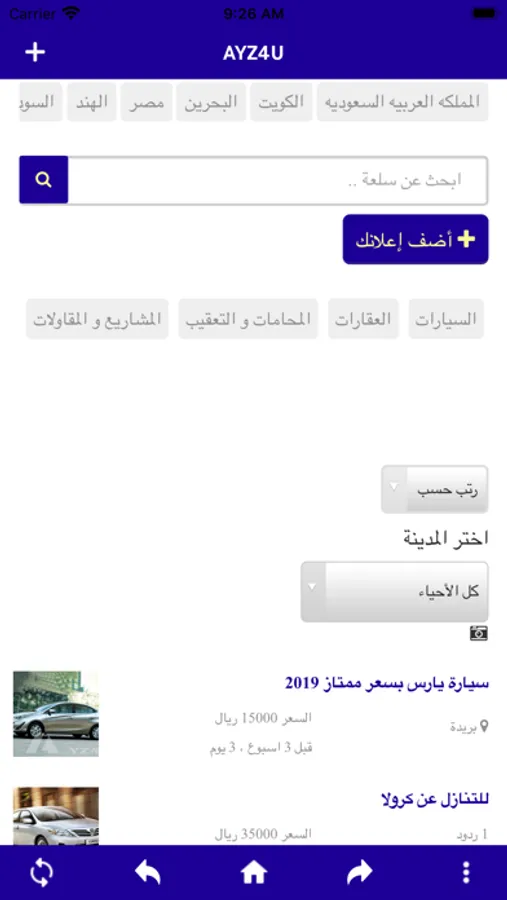 بعد دراسة طويله استطعنا أن نخرجه لكم موقع AYZ4U بلباس جديد و بحلة جديدة سهل الاستعمال متعة الاستخدام لقد جمعنا لكم تحت سقفاً واحد جميع الخدمات التي تهم كل أنسان في هذه الحياة وإدخلنا جميع مدن المملكة العربية السعودية الكبيرة والصغيرة وجميع أحيائها إضافتاً إلى باقي الدول الخليجية الشقيقة سوفا نقوم بتحديث الموقع وتطويره المستمر حتى نكون في مقدمة الركب بإذن الله وحتى يستفيد الجميع فيكون لهم المصدر الأول في تجارتهم وخدماتهم وتلبية رغباتهم .