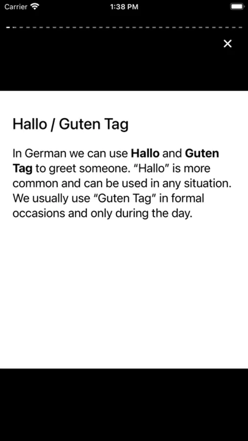What's more, we have integrated an innovative feature: flashcards. Practice new words with our flashcards, enriched with useful grammar tips to solidify your understanding and usage of the German language.