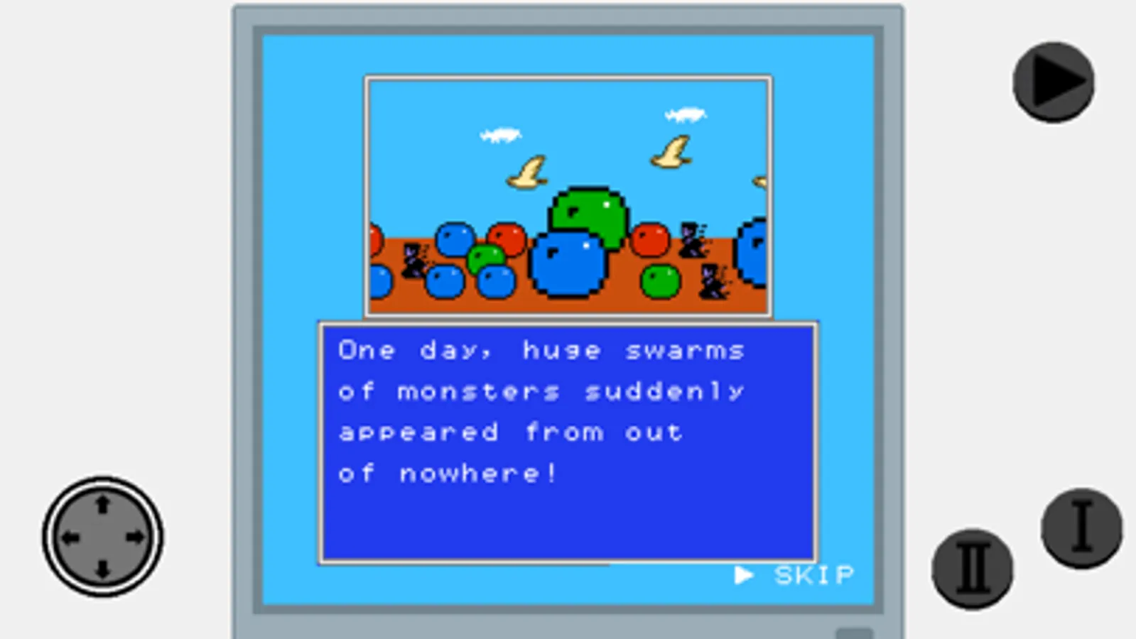 Graphics are illustrated in an 80's video game.