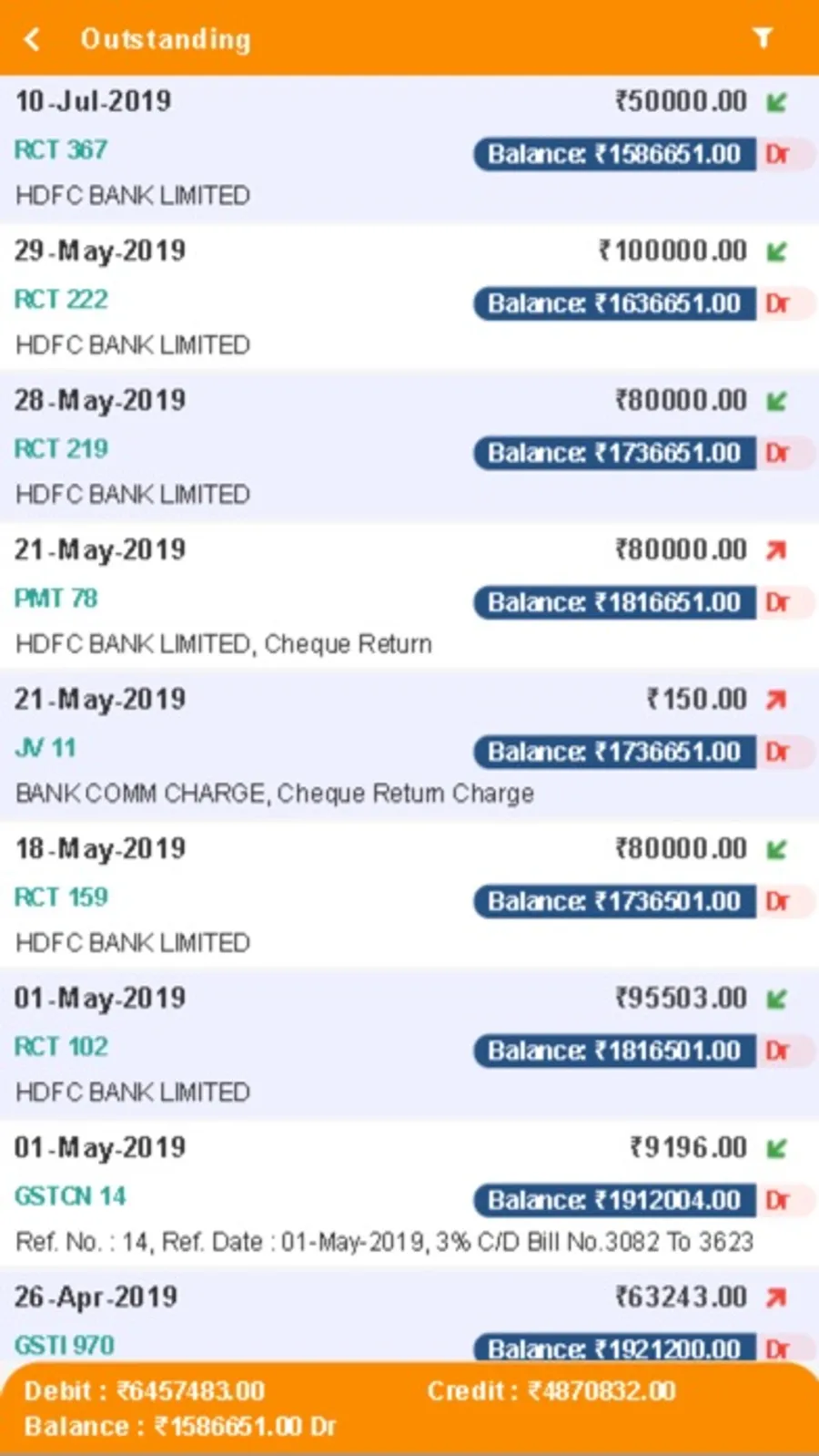 • Retailer/ Party Outstanding Account Statement / Ledger