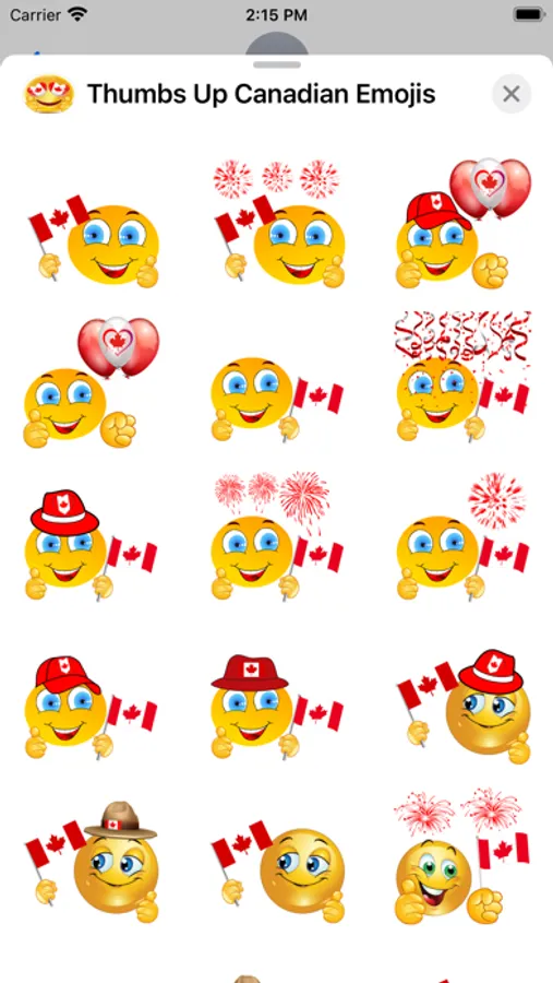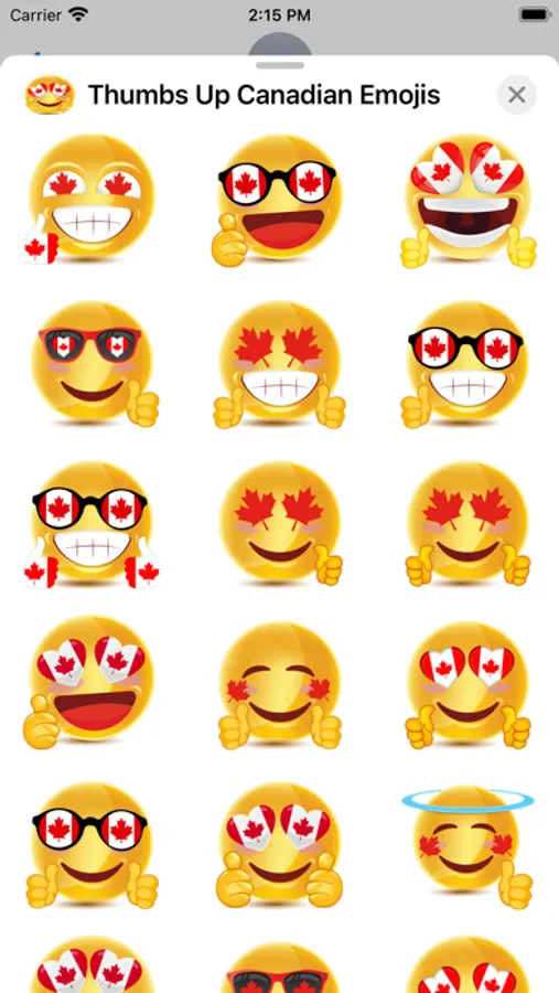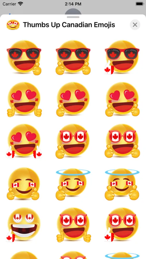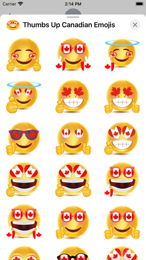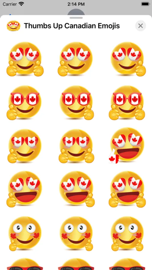 Thumbs Up Canadian Emojis include 99 emojis to use in your iMessage conversations. Thumbs Up Canadian Emojis also look awesome in dark mode. Check out some screenshots.