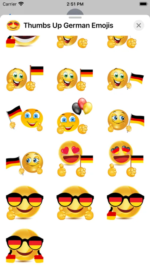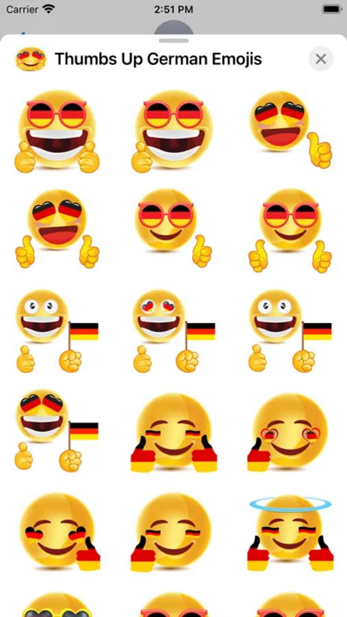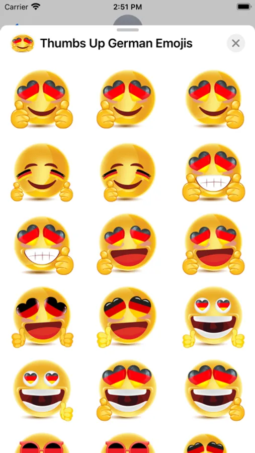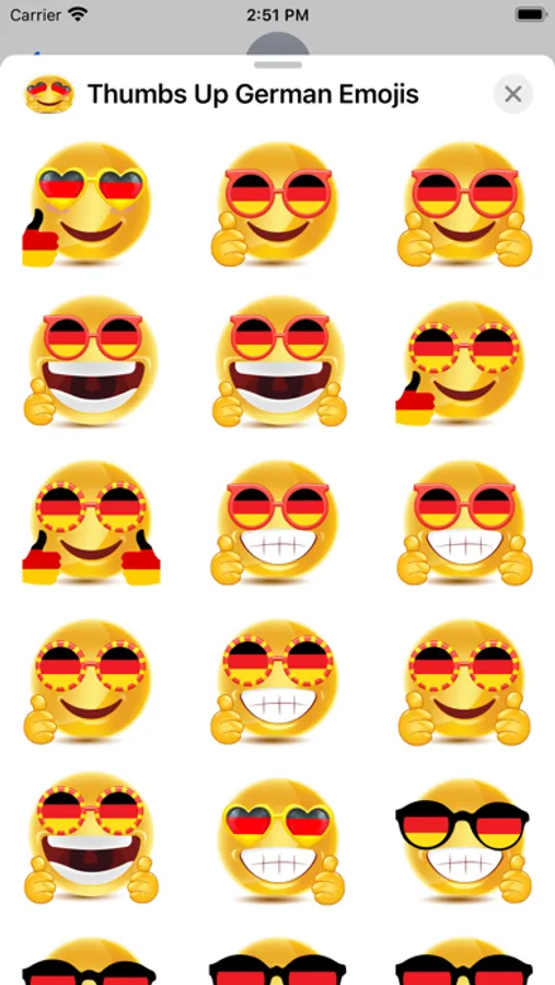 Thumbs Up German Emojis include 64 emojis to use in your iMessage conversations. Thumbs Up German Emojis also look awesome in dark mode. Check out some screenshots.