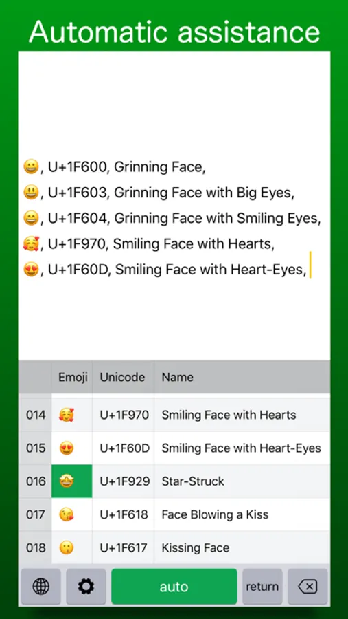 By simply tapping the "Auto Key" repeatedly, the "CSV Keyboard" moves the selection to the next cell and inputs the text on your behalf, making work quick and efficient.