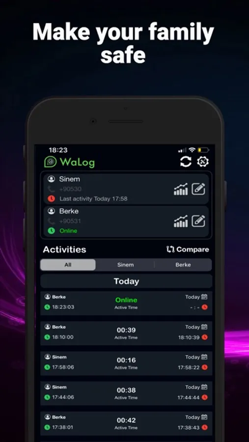 WaLog helps you achieving it by tracking and analyzing your loved ones' or your own online activity.