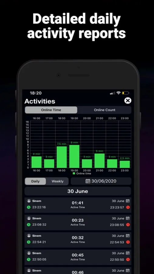 Track online activities of your child or other family members. Is your child really sleeping? Receive instant notifications and get status reports in real-time.