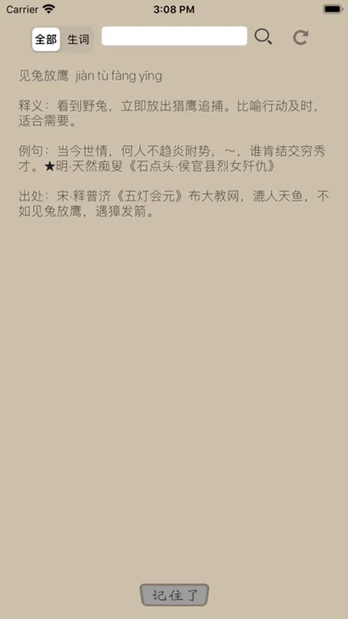 ◆ 成语(chéng yǔ,idioms)是中国汉字语言词汇中定型的词。成语多为四字,亦有三字,五字甚至七字以上。成语是中国传统文化的一大特色,有固定的结构形式和固定的说法,表示一定的意义,在语句中是作为一个整体来应用的,承担主语、宾语、定语等成分。成语有很大一部分是从古代相承沿用下来的,在用词方面往往不同于现代汉语,它代表了一个故事或者典故。有些成语本就是一个微型的句子。 成语又是一种现成的话,跟习用语、谚语相近,但是也略有区别。成语是中华文化中一颗璀璨的明珠。成语,众人皆说,成之于语,故成语。