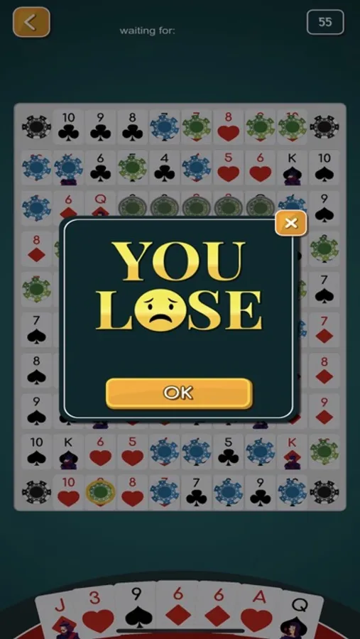 - If you hold a card in your hand which does not have an open space on the game board because both spaces representing that card are covered by a marker chip, you are holding a DEAD CARD and you may turn it in for a new card. When it is your turn, place the dead card on your discard pile, announce that you are turning in a Dead Card and take a replacement card (one card per turn). You then proceed to play your normal turn.