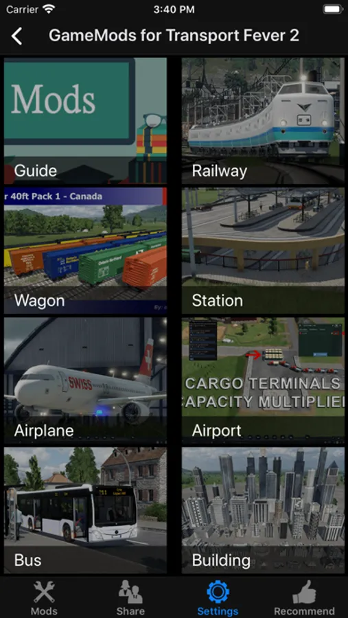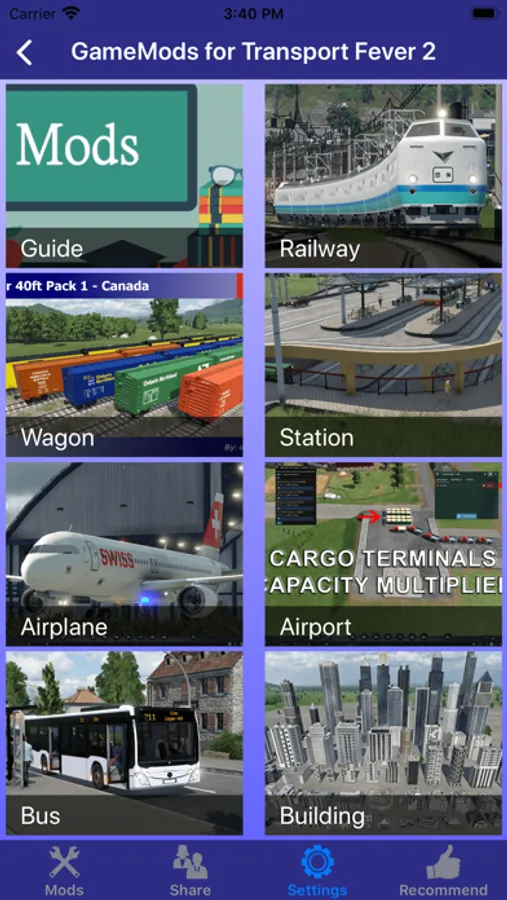 This unofficial GameMods for Transport Fever 2 collected about 90 mods of the game. When we discover other interesting mods, we will continue to update the app.
