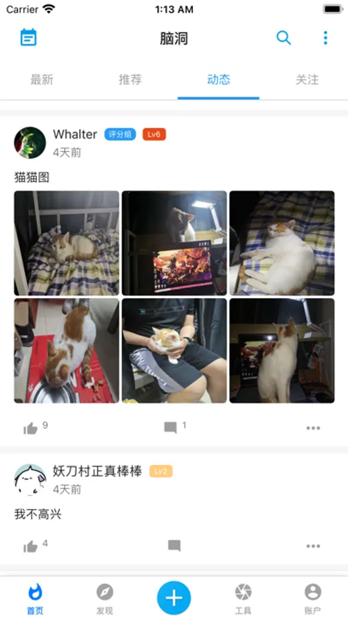 1.首页:包含最新/推荐/动态/关注等多种内容;