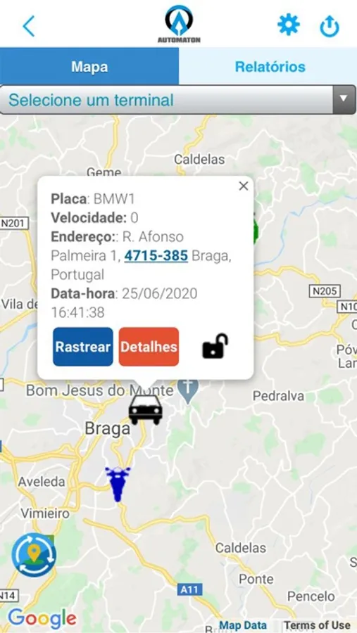 Rastreio em tempo real com revisão de trajetos percorridos, geração de arquivo GPX para visualização em outros aplicativos, alarmes e notificações em tempo real. Compatível com todos os modelos de localizadores GPS comercializados pela Automaton Solutions.