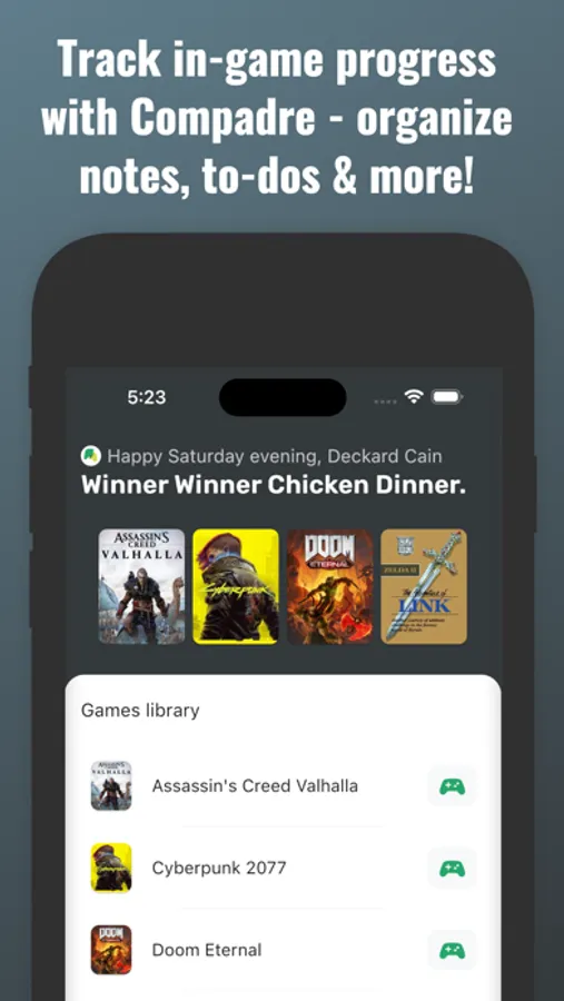 Gone are the days of scribbled notes and forgotten objectives. Compadre acts as a comprehensive game notebook, helping you chronicle every adventure. Our seamless game organizer feature categorizes your entries game-wise, making sure you always have quick access to your past exploits.