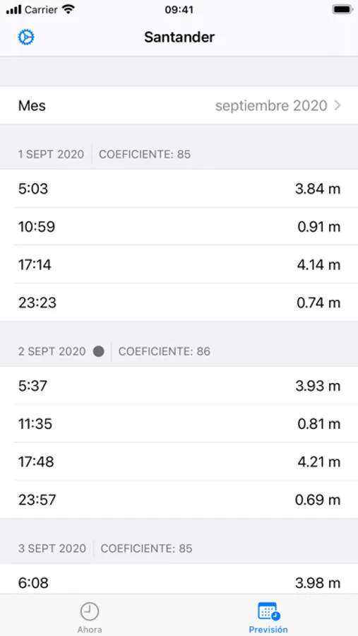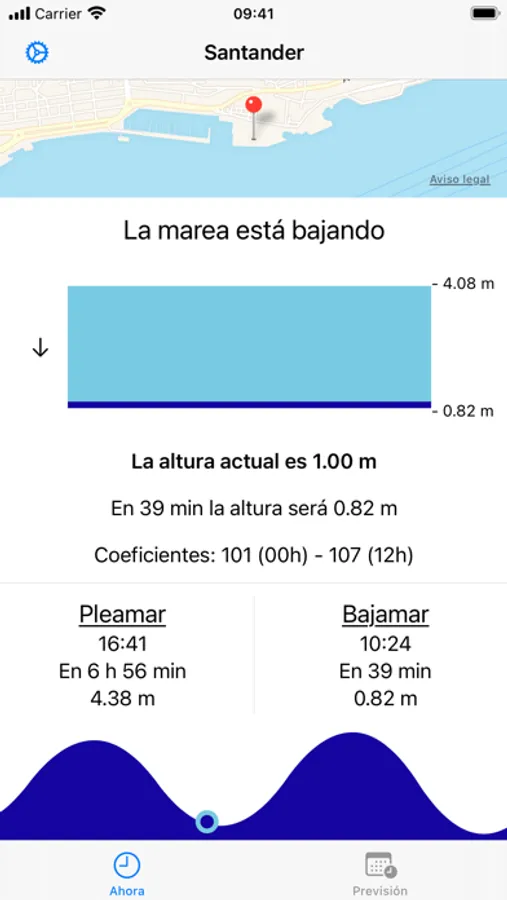 Rápidamente podrás consultar el estado de la marea (subiendo / bajando), la altura actual, e información sobre los coeficientes, próximas pleamar y bajamar.