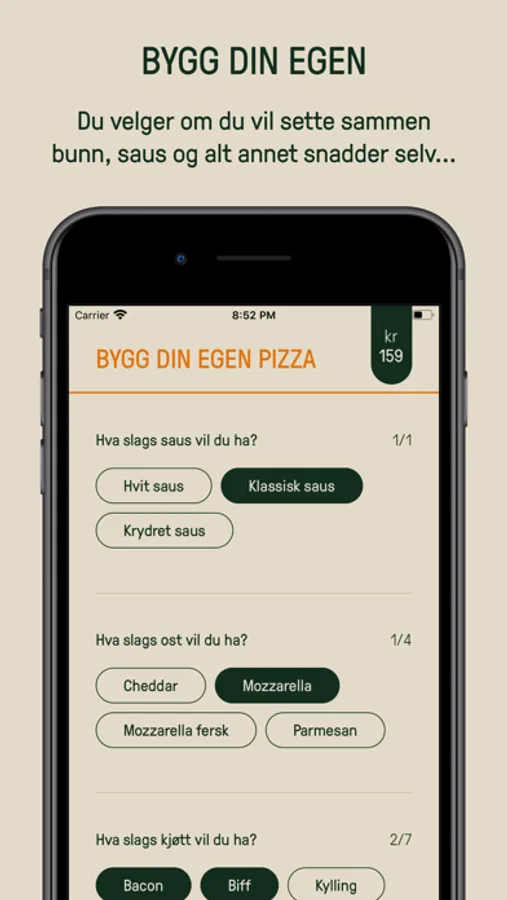 Digg pizza til digg pris! Du velger om du vil sette sammen bunn, saus og alt annet snadder selv eller overlate valget til oss med en meny fylt av både klassikerne og våre favoritter.