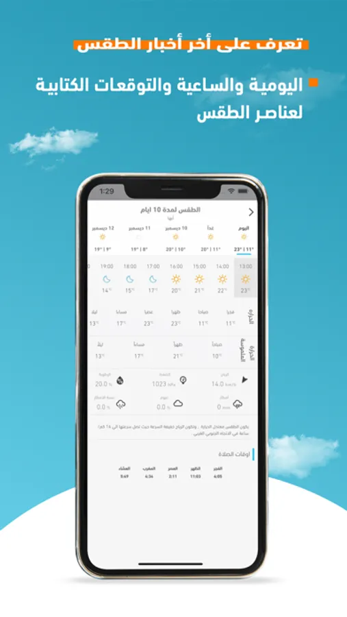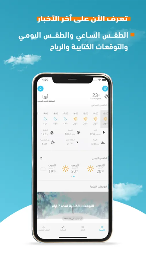 - عرض التوقعات المفصلة على مدار 5 ايام.