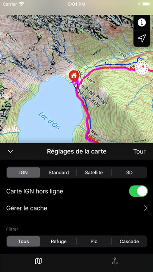No internet connection is required (during hiking) except for the first launch of the app where you can download all the GR10 maps.