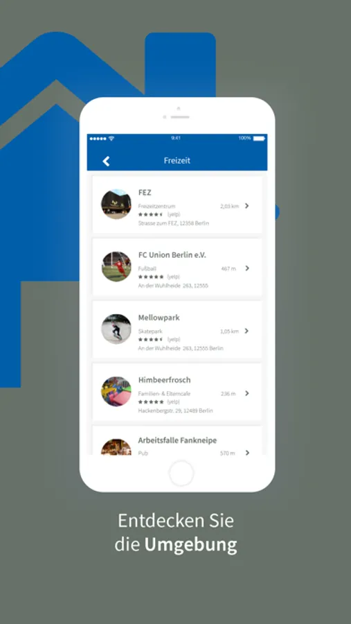 Informieren Sie sich z.B. über Geschäfte, Ärzte, Erstatten und über die Öffnungszeiten in Ihrer unmittelbarer Umgebung.