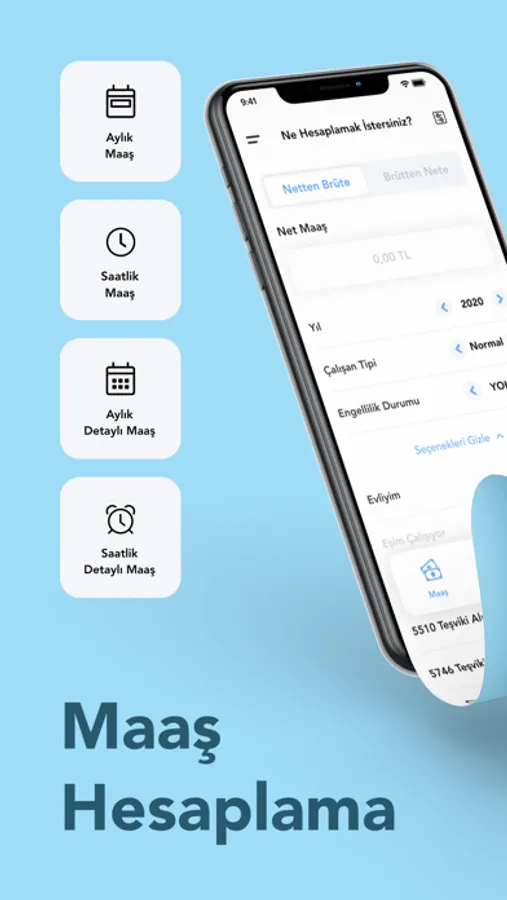 Maaş Hesaplama uygulaması ile yapabileceğiniz tüm işlemler;