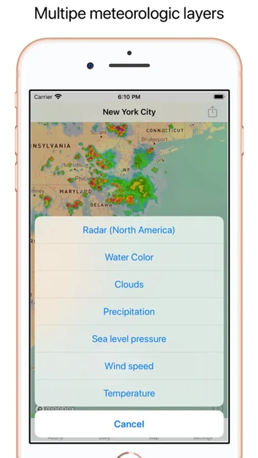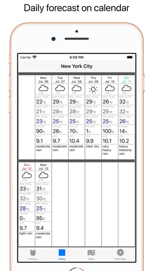 This simple and intuitive weather forecast app will show 48 hours forecast on dashboard, daily forecast on calendar, radar and other meteorologic layers on map.