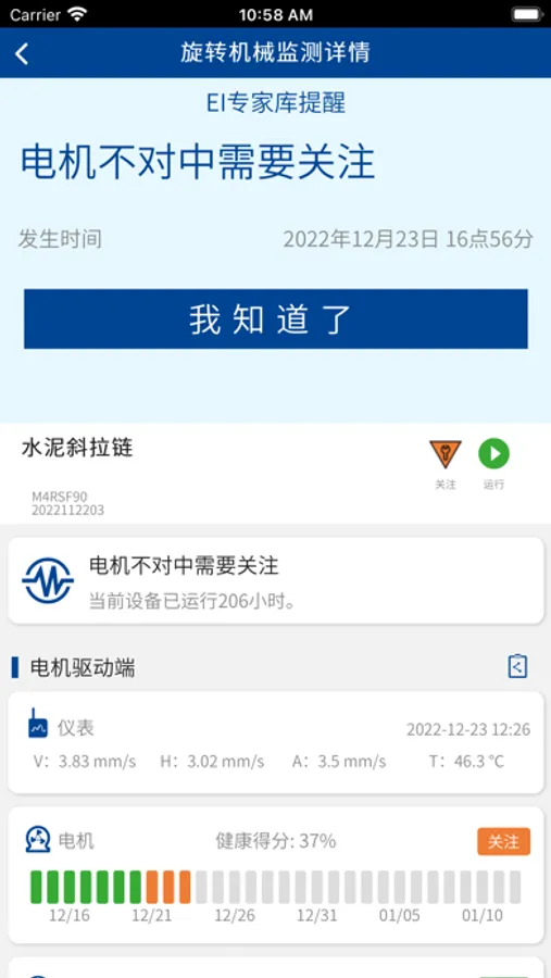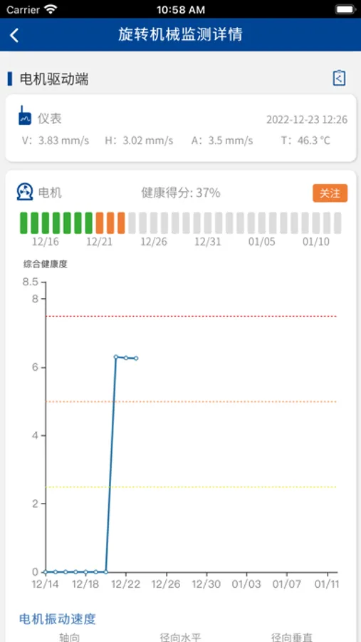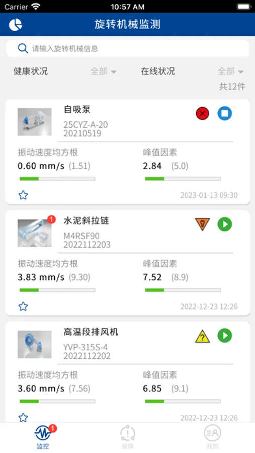 通过物联网高频振动传感器和边缘计算网关采集减速机的状态数据,WitExpert利用智能算法模型对数据进行深层次分析,实现不平衡、不对中、松动、齿轮磨损、轴承老化等减速机故障的预测及诊断。