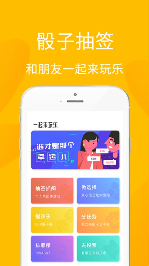 抽签,跟好友一起,抽签决定谁是谁;一键分享不麻烦!