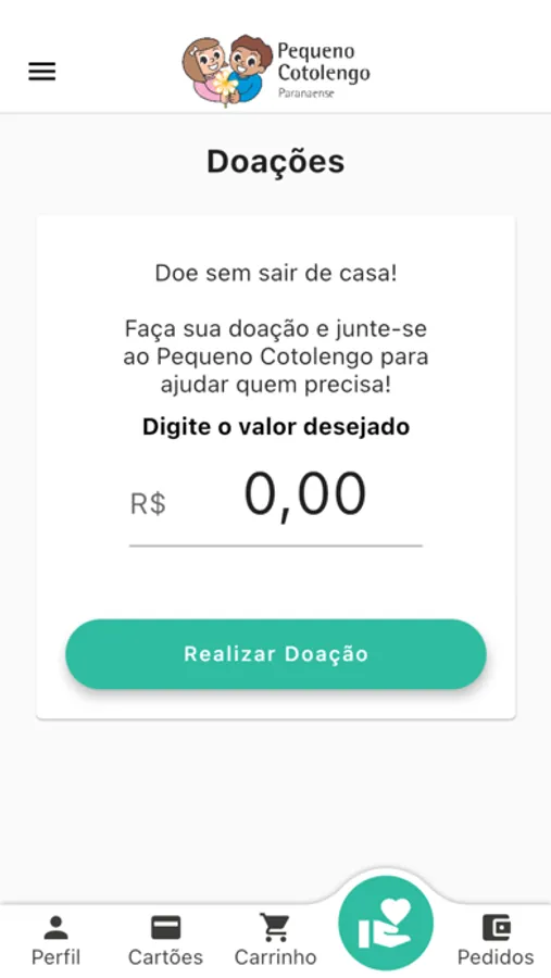 No aplicativo também tem a opção de realização de doações.