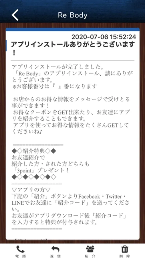 このアプリでは、Re Bodyの最新情報の受け取りや便利な機能を使う事ができます。