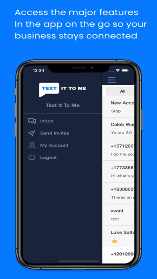 Text It To Me is built for modern small business communication. Now right from your website, anyone can initiate a text message conversation with your business. No matter if you are a one-person business or have several employees that view and answer messages the Text It To Me mobile app makes it simple to view and respond to messages from your mobile device.